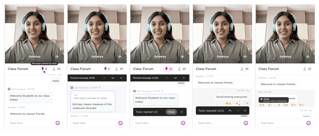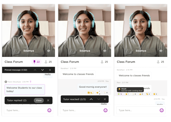 A robust, chat-based Class Forum served as a log of important in-class notifications. Its features increased engagement and fostered fun peer interactions.