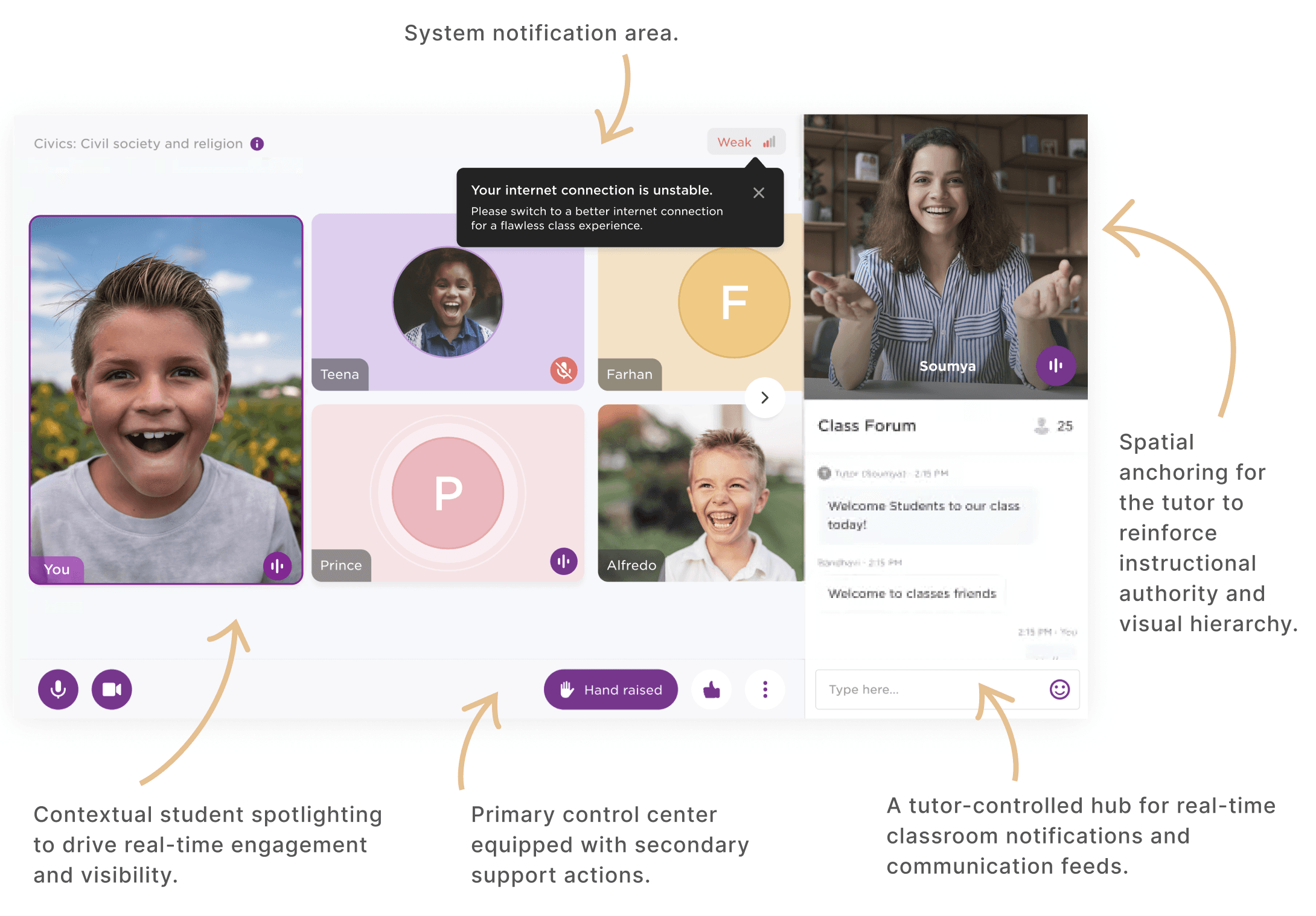 Educator Control Centre: Real-time classroom management tools and tutor analytics.